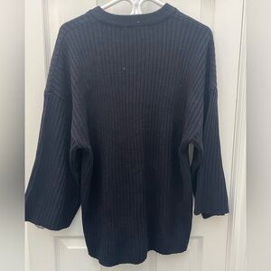 Elegant dark sweater with ribbed texture. Ideal for layering.
