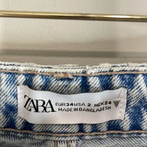 Zara Ripped Ultra High Waist Mom Jeans Blue Light Wash Denim Ankle Size 2