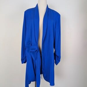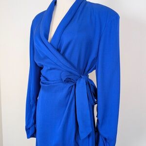 Zara Royal Blue Blazer Dress Wrap Front Mini Asymmetrical Long Sleeve Gathered