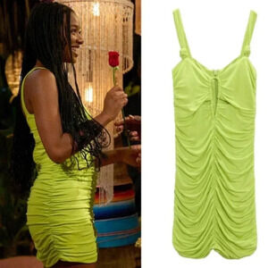 Zara Ruched Cut Out Party Mini Dress Lime Neon Green Size Small