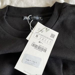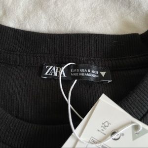 Black ruched ribbed T shirt dress from Zara. Super cute and trendy summer dress. Never been worn, only tried on. Tags are still on.
