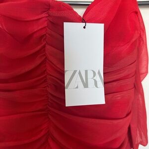 Zara Ruched Tulle Corset Dress - Beige-Red - Size M - NWT