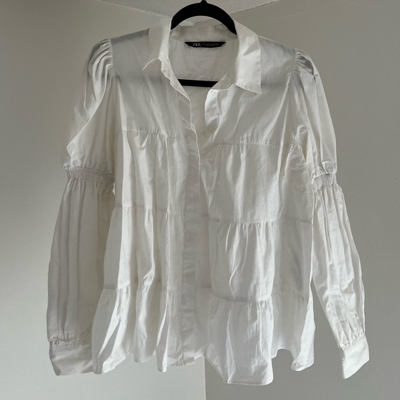 White Zara ruffled button-up blouse, only worn it a few times so it’s in amazing condition!