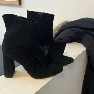 Zara suede ruffle boots, very good condition. Aprox. 3.5 inch heel but very comfortable. Interior zip. Very cool! Size 39