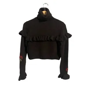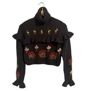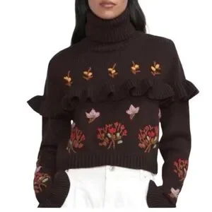 Zara Ruffle Floral Embroidered Sweater