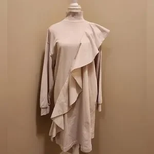 This minidress is cozy and eye catching, thanks to the material and great ruffle across the front.