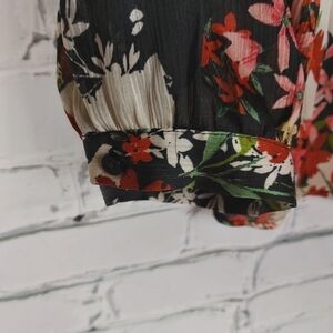 V-neck ,Ruffled with floral print and lace