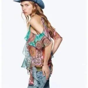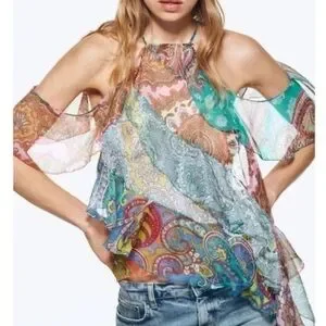 Brand new Zara paisley patchwork top with ruffles and off the shoulders