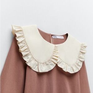 Zara blush pink knit top with oversized ruffled Peter Pan collar.