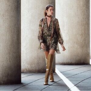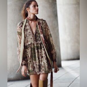 Zara Ruffled Print Mini Dress. New edition with Tag. Elegant floral dress in a beautiful green hue. Perfect for any occasion.