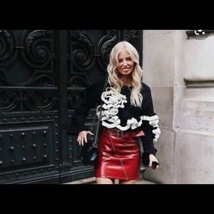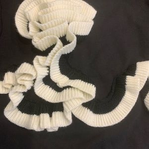 Stylish Zara sweater. Black with white eye-catching ruffle accents. Crew neck design. Perfect for elevated casual wear.