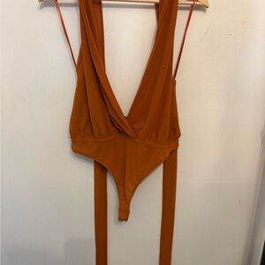 Stylish rust bodysuit with deep V-neck. Sleeveless design. Perfect for layering. Never worn or tried on #809