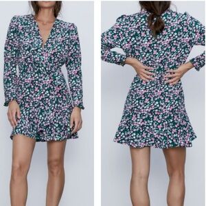 Zara S VGUC Short balck evening skater dress with flower and back metal zip