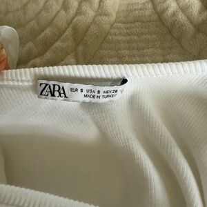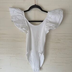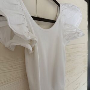 Zara S | White Ribbed Bodysuit with Double Ruffle Sleeves