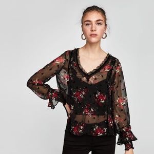 Zara SEMI-SHEER TOP WITH RUFFLE TRIMS