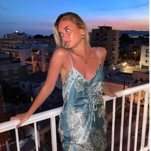 Zara Satin Bandana Paisley Print Mini Dress Teal Size Small Blogger Fave
