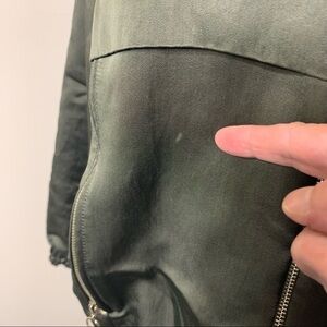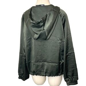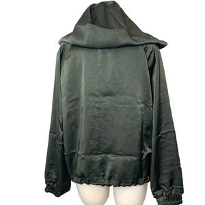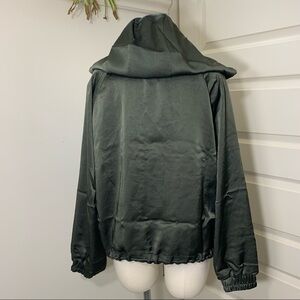 Zara Satin Bomber Jacket Green Hooded Zip Up Green Sz M Relaxed Fit Y2K