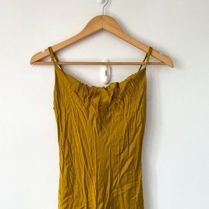 Worn once for a wedding. The colour is mustard yellow, size small. Beautiful dress in great condition.