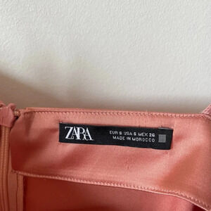 Zara Satin Cut Out Draped Ruched Mini Dress Peach Pink Sz S