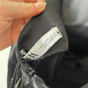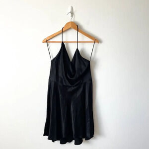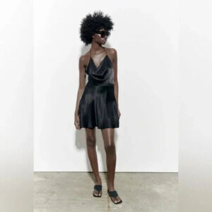 Zara Satin Effect Fluid Cowl Neck Mini Dress NWT Black Size Medium