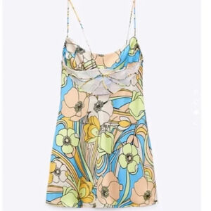Zara Satin Effect Print Mini Dress Blogger Fav Sz Medium