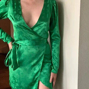Zara Satin Effect Robe Wrap Long Sleeve Mini Dress Green Size Small