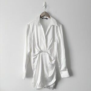 Zara Satin Effect Wrap Mini Dress Long Sleeve White Blogger Fav Size Small