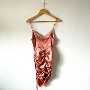 Zara Satin Like Cut Out Draped Ruched Mini Dress Peach Pink Sz S