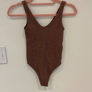 Zara Seamless Ribbed Tank Bodysuit Taupe Brown XS/S