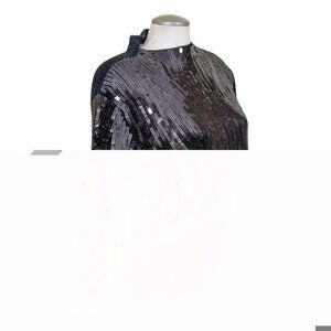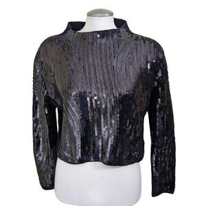 Zara Sequin Embellished Chenille Sweater Womens Medium Black Cropped Long Sleeve