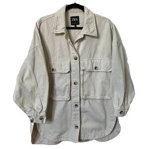 Zara Shacket Womens M/L Oversized Denim Layering Transitional Tan Neutral