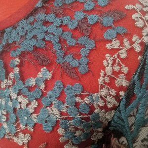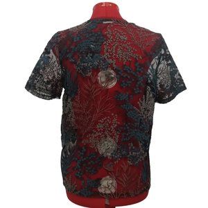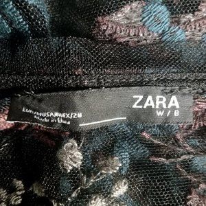 Zara Sheer Black Mesh Embroidered Short Sleeve Blouse W/B Collection Size US M