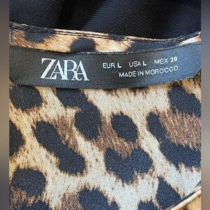 Zara Sheer Chiffon Leopard Print Top Tshirt Animal Print Size L