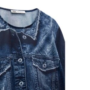This Zara top offers a fun twist on casual style with its printed denim jacket design. Made from a lightweight, sheer fabric with a classic crew neck cut, it creates the look of a layered denim jacket. The printed details—like buttons, seams, and pockets—add a playful, eye-catching touch. Easy to style with jeans, skirts, or trousers, this top is a unique statement piece that’s both comfortable and versatile. In excellent condition!
