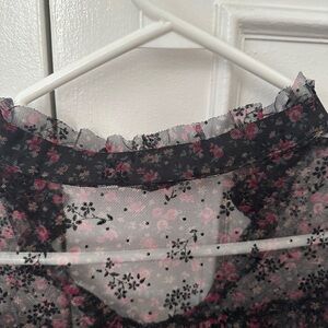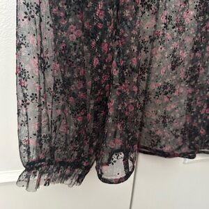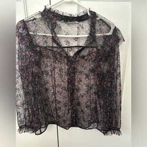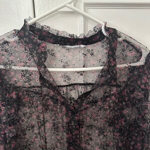Zara Sheer Floral Black Blouse with Ruffles Size Medium Womens