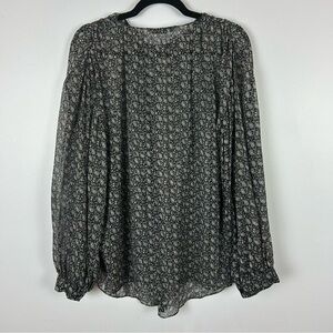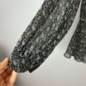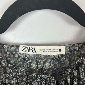 Zara Sheer Metallic Black Buttoned Long Sleeve Blouse Size XL