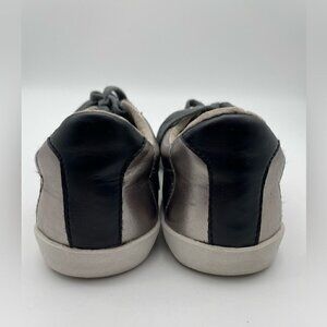 Grey interior lining. Grey Metallic with contrasting white sole & black contrasting detail on tongue & back of shoe.