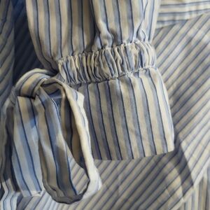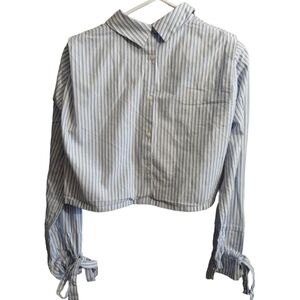 Zara crop, pin stripe white and blue shirt with bow sleeve. Size: M