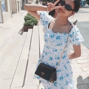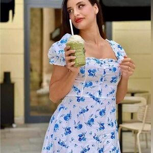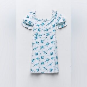 Zara mini Dress with square neckline and short sleeves. Elastic trim and false front buttons.