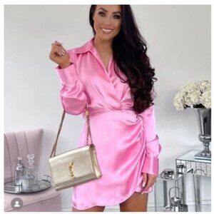 Zara Short Satin Effect Long Sleeve Mini Dress Pink Size Large Blogger Fav