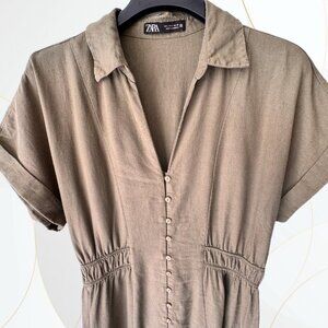 Zara Short Sleeve Linen Blend Maxi Dress