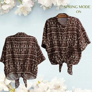 Zara Short Sleeves Button Up Tie Waist Crop Top Sz. XXL