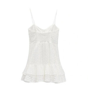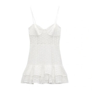 Zara Short White Eyelet Lace Mini Ruffled Dress Size Large Sweetheart Neckline