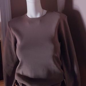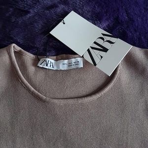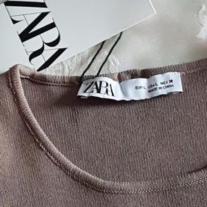 Zara long sleeve taupe shirt with shoulder pads. Lots of stretch with thicker, good quality material.
