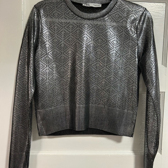 Zara Silver Geometric Knit Top