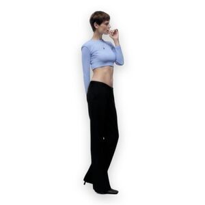 Zara Sky Blue Textured Long Sleeve Round Neck Crop Top US Medium