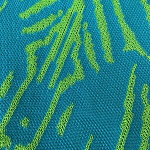The combination of light fluorescent green and soft turquoise blue creates a vibrant, summery look full of color.