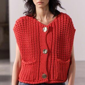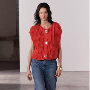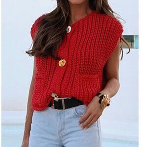 Zara Sleeveless Cropped Knit Sweater Vest Red Blogger Fav Size Small