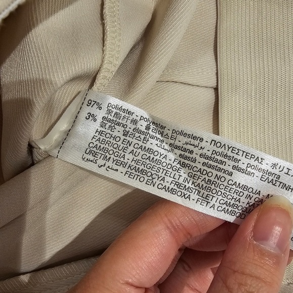 These slim fit leggings by Zara emit classic elegance. In a cream hue, they pair well with many colours on your wardrobe. Perfect for work, date night or brunch with friends. Button fly with gold metal. High rise waist.
