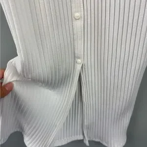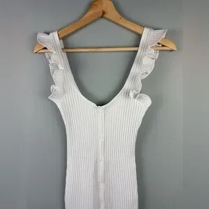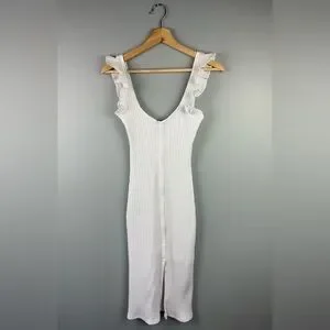 Elegant cream dress with ribbed texture. Features a button-down front.